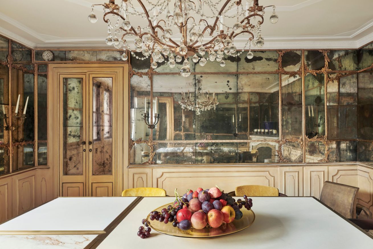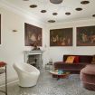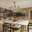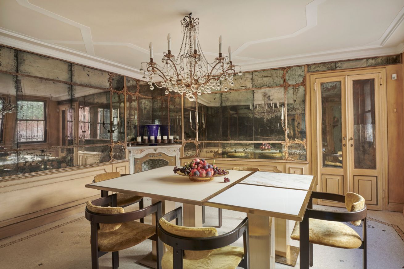 To the right of the main entrance is a stunning dining room with original mantelpiece, wood panelling and antique mirrors. Terrazzo flooring throughout. An adjoining service area and kitchen are conveniently positioned to assure effortless service by the 2 household staff. A service entrance and stairway connects all floors.
