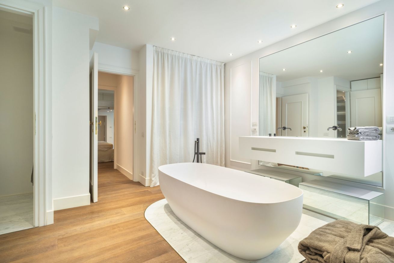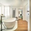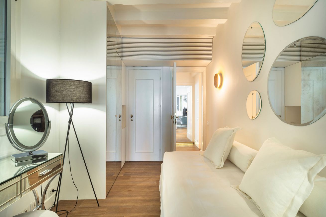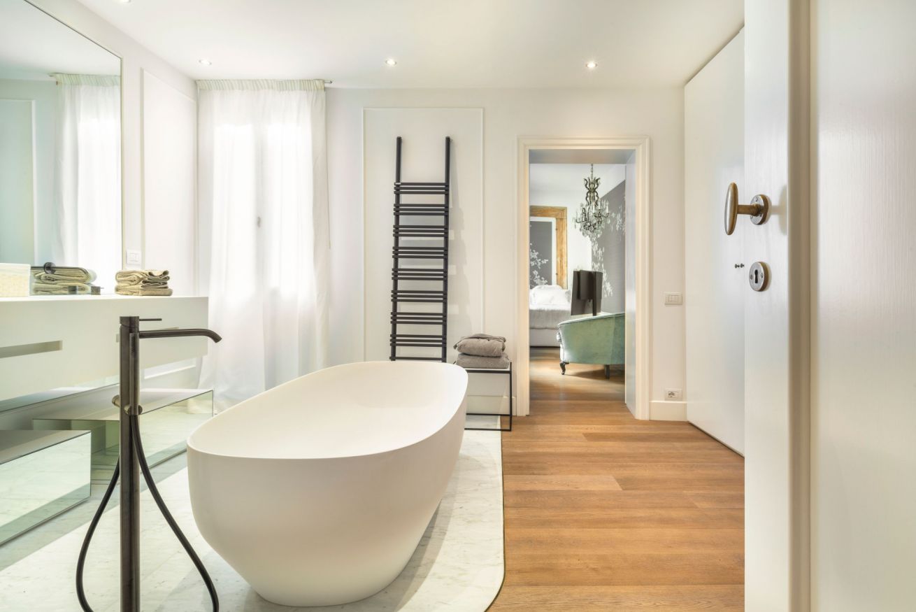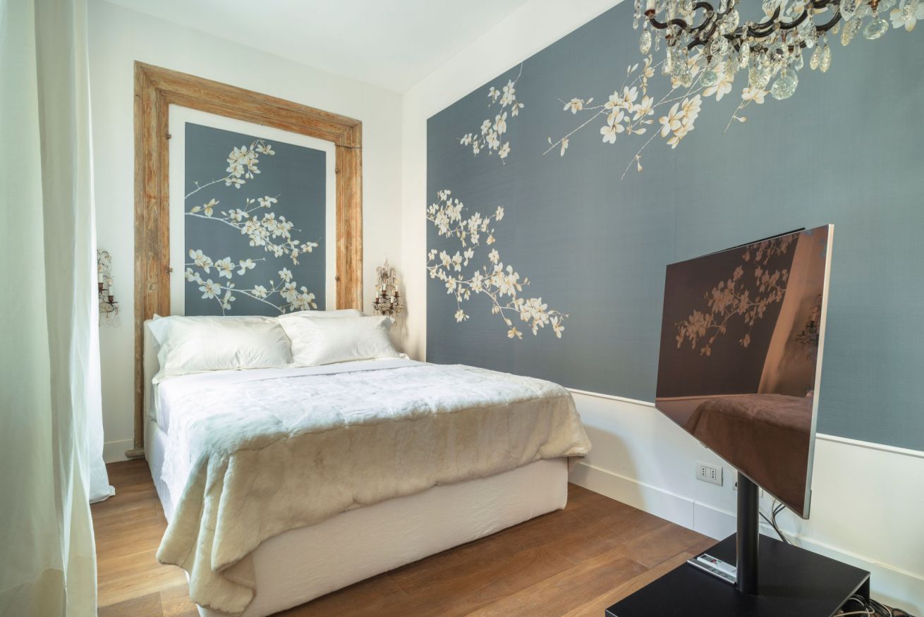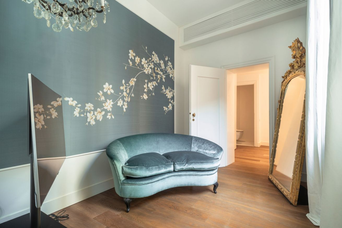 Design notes: Decorated in a sophisticated contemporary style with warmlight colours and comfortable furnishings, with walls adorned with exquisite silk wallpaper, and accented by original Venetian stuccoes, the whole decor seamlessly blends modern and historical design elements.