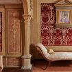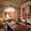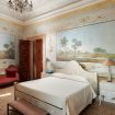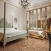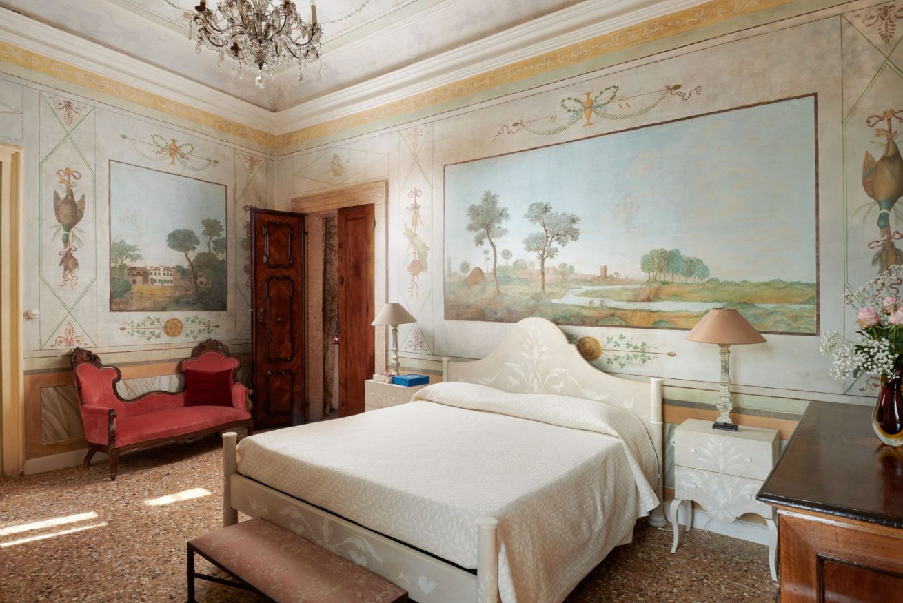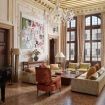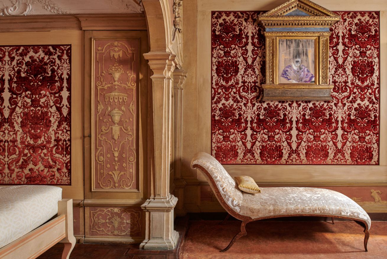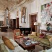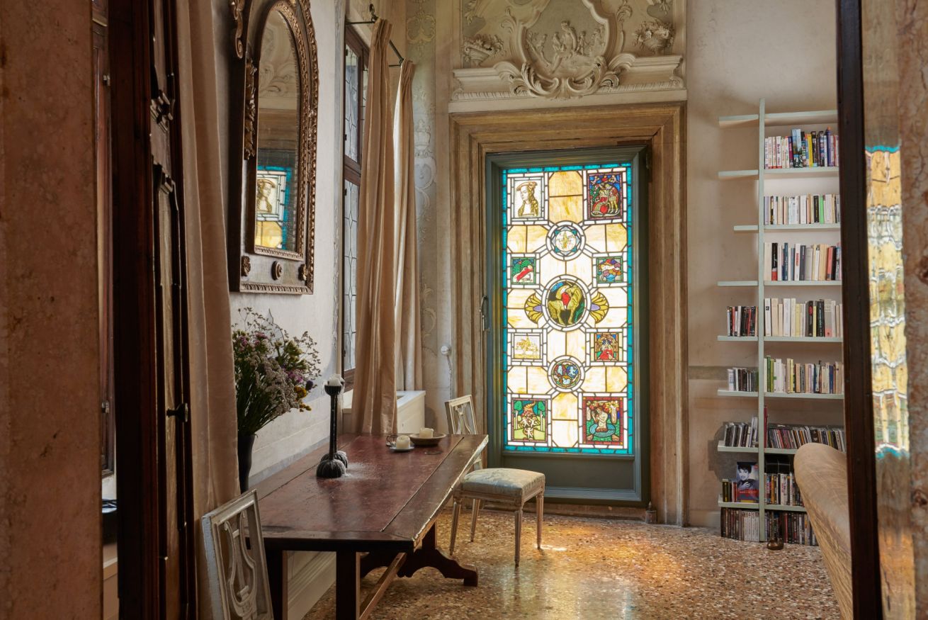 The furniture is an eclectic mix of period and contemporary pieces, with antique chandeliers and mirrors from Murano, France and Italy, in contrast with drapes by the Venetian textile-designer Rubelli.