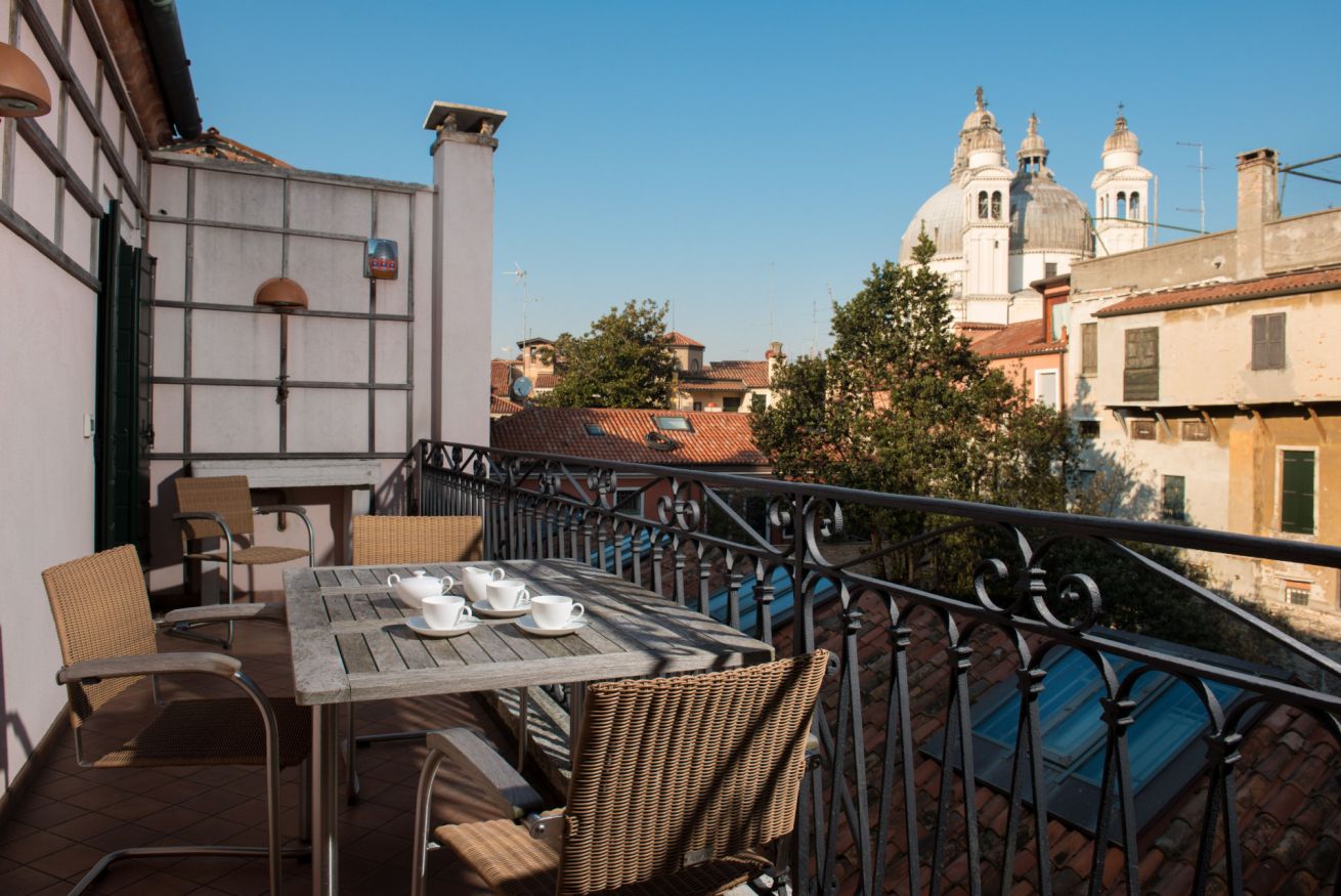 A stunning second floor design apartment with exceptional panoramic views over the whole of the Giudecca Canal from Zattere towards the Redentore Church and beyond.