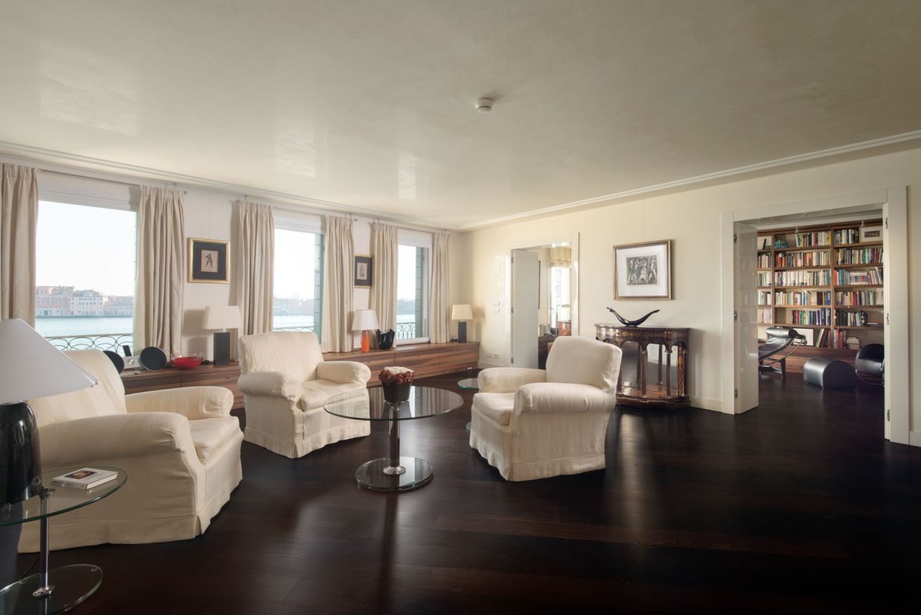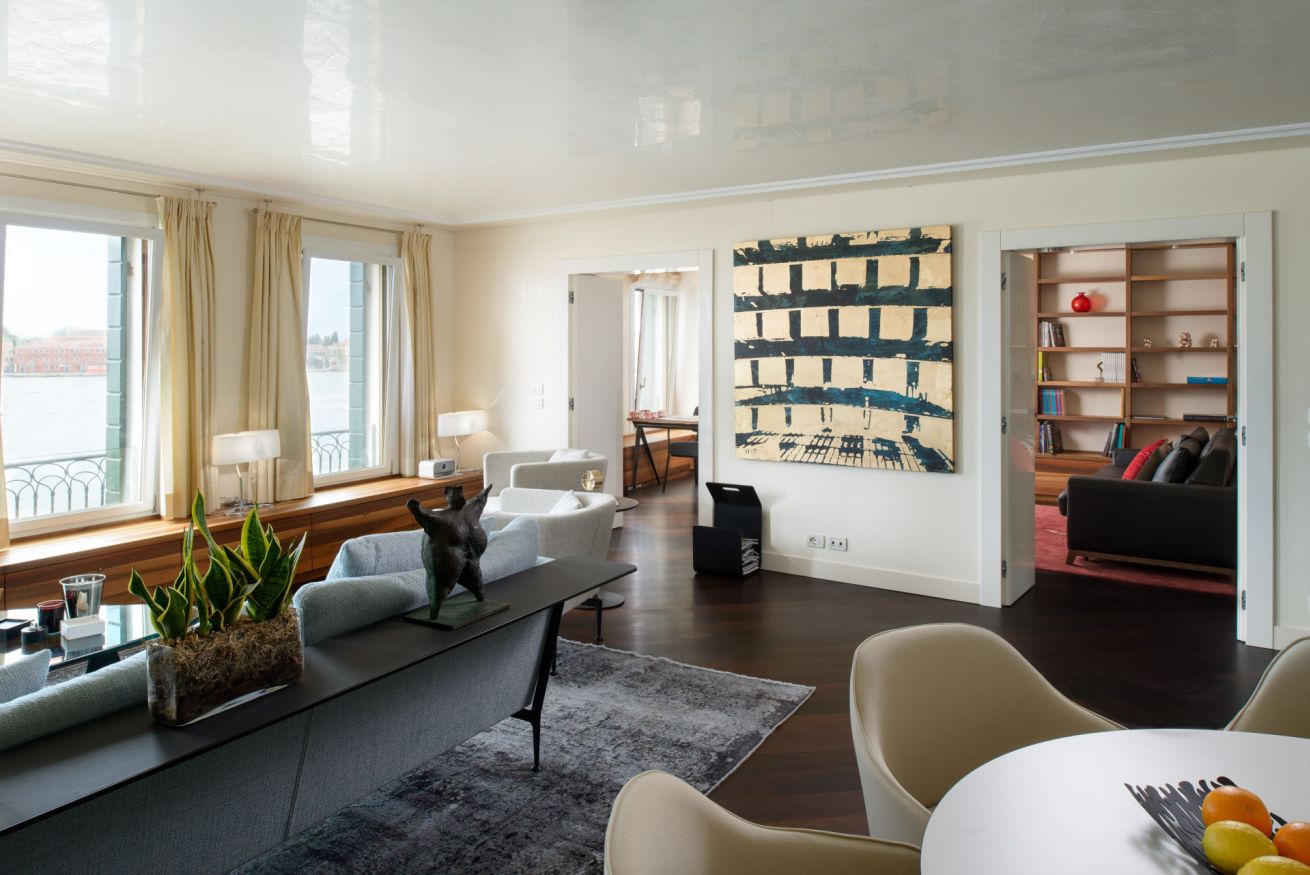 The main large reception living/dining room is both extremely comfortable and cleverly arranged around the view through three large windows with seating overlooking the widest part of the Giudecca canal.